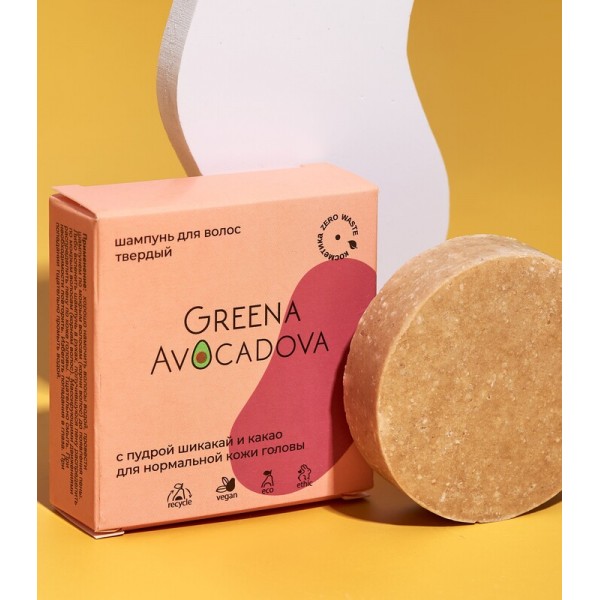 Шампунь твердый с пудрой шикакай и какао для нормальной кожи головы