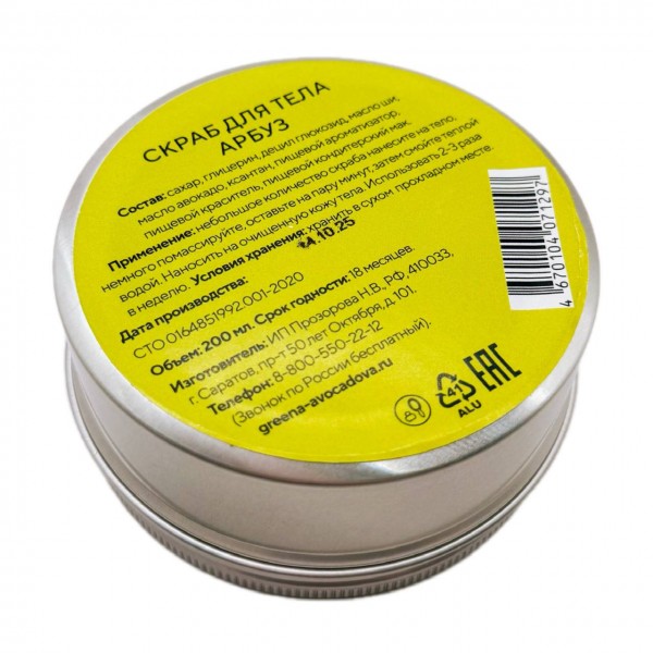 Способ применения: Небольшое количество скраба нанесите на тело, немного помассируйте, оставьте на пару минут. Смойте водой. Рекомендуем использовать 1-2 раза в неделю.