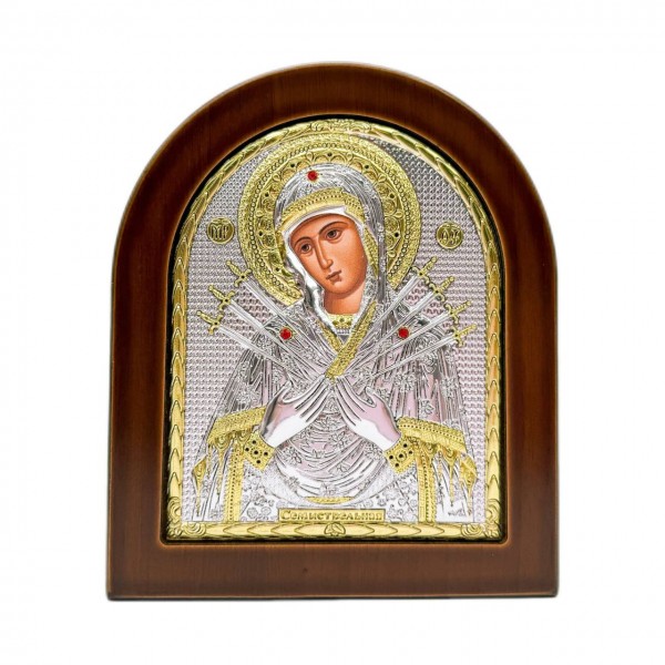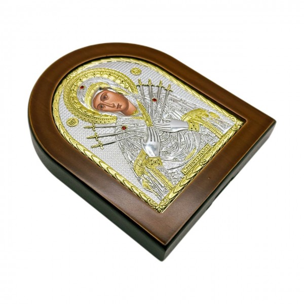 Икона "Семистрельная" (110х130 мм), серебро, Греция