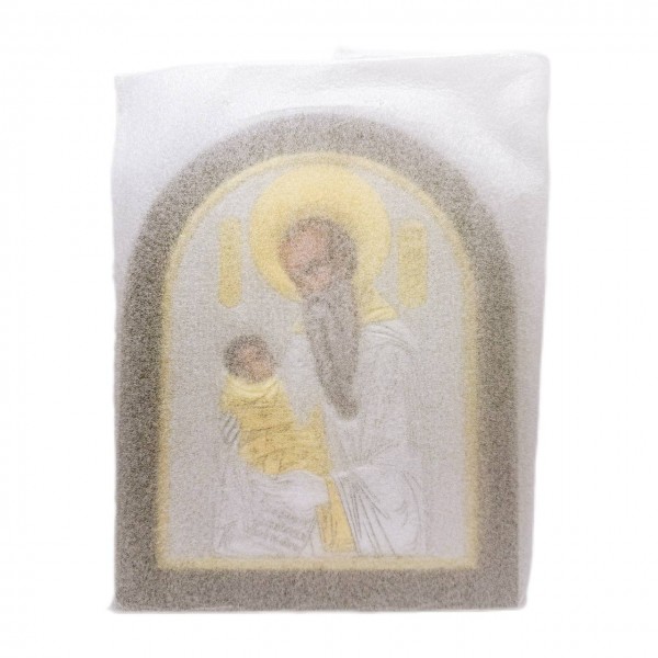 Лик воспроизведен методом шелкографии, на цвета которой не влияет время, согласно художественному стилю византийской иконописи.