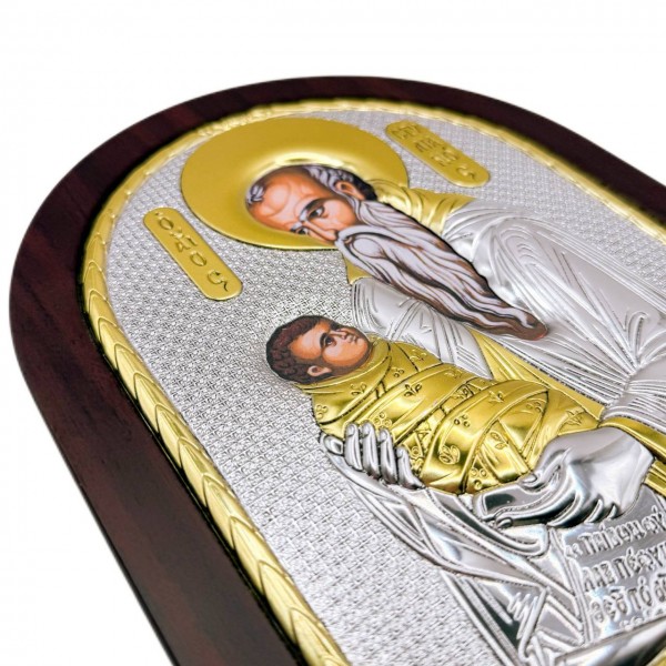 Оклад выполнен из специального металлического сплава с обработкой серебром 999 пробы методом технологии PVD.