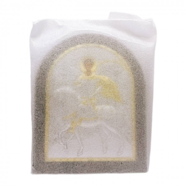 Лик воспроизведен методом шелкографии, на цвета которой не влияет время, согласно художественному стилю византийской иконописи.