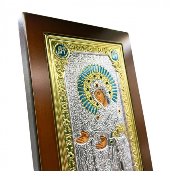 Шелкография. Византийский художественный стиль иконописи. Посеребрение. Сделано в Греции. Афон.