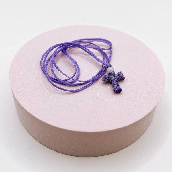 Нательный вязаный крестик фиолетового цвета, Афон.
