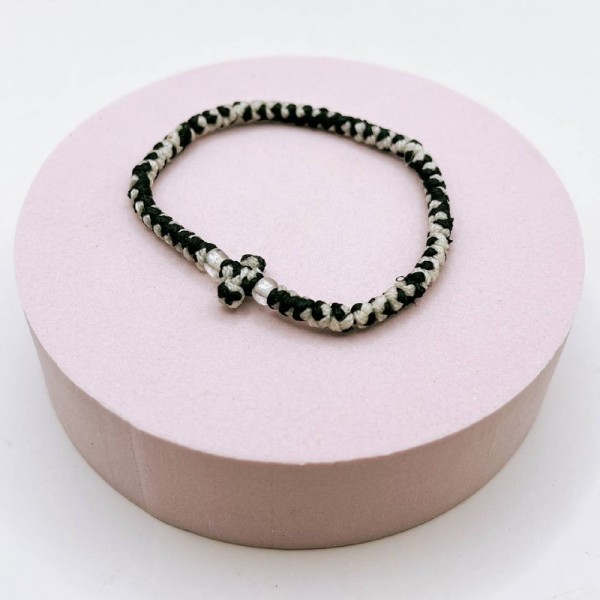 Черный-белый вязаный браслет (комбоскини) с двумя белый бусинами, Афон.