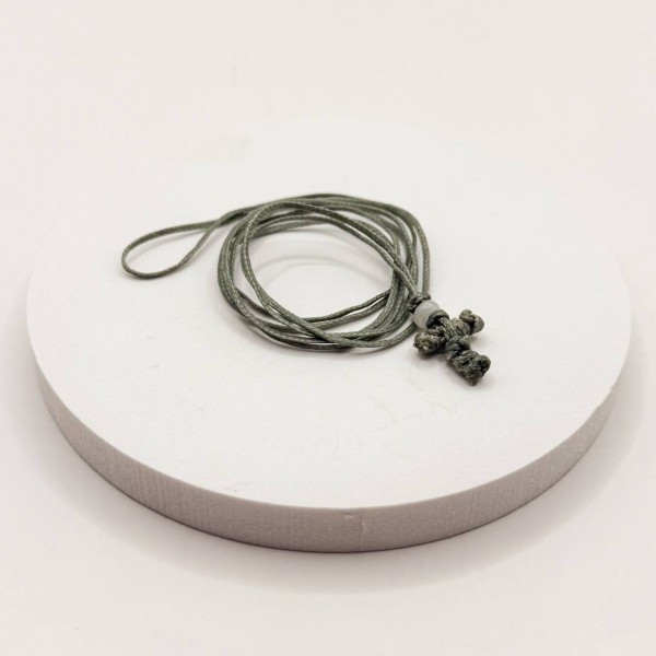 Нательный вязаный серый крестик с белой бусиной, Афон