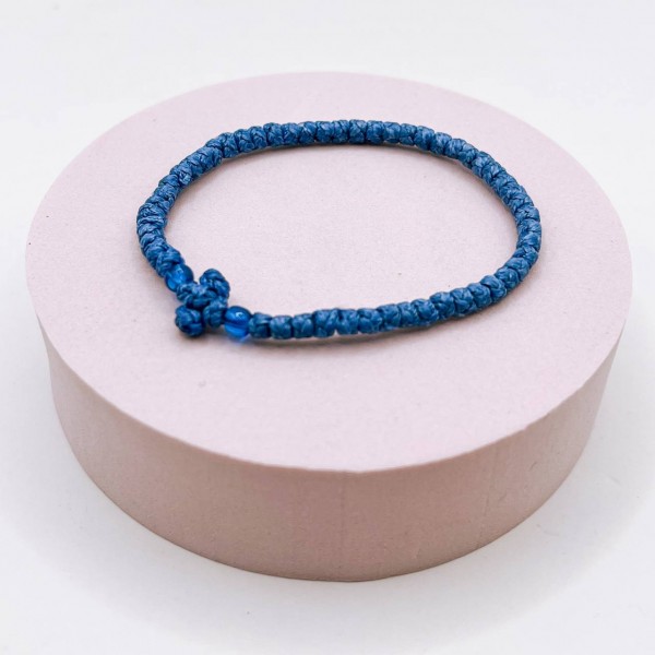 Голубой комбоскини (вязаный браслет) с двумя голубыми бусинами, Афон