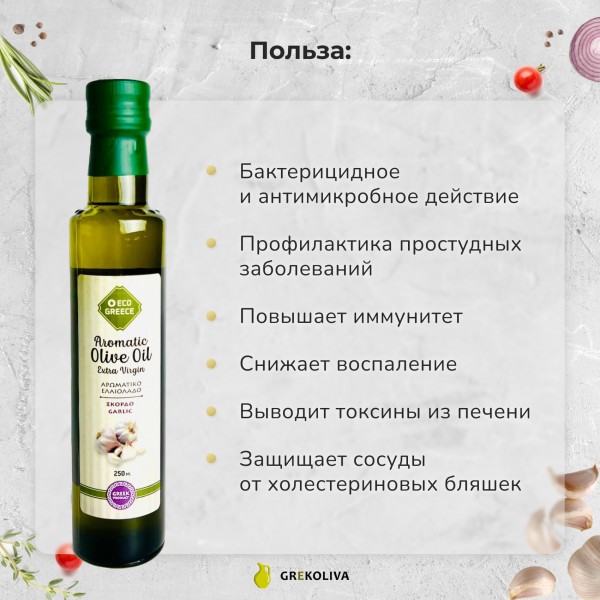 Оливковое масло EcoGreece с ЧЕСНОКОМ, ст.бут., 250мл
