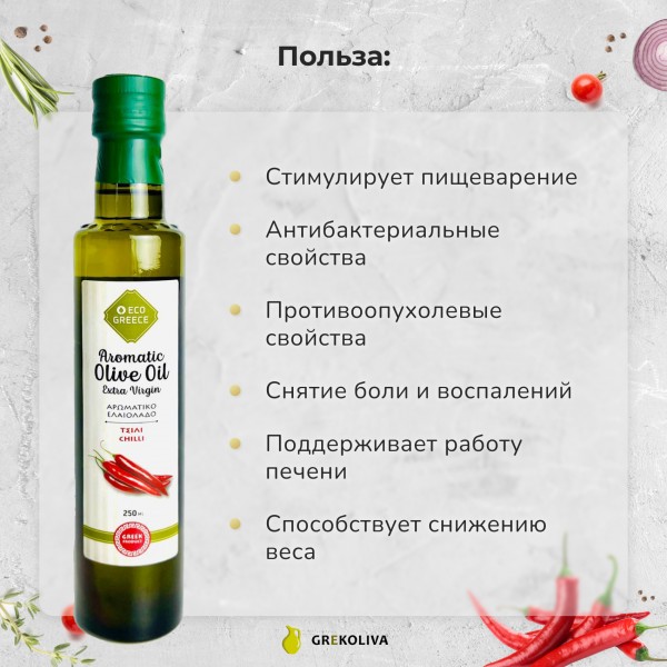 Оливковое масло EcoGreece с ПЕРЦЕМ чили, ст.бут., 250мл