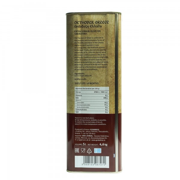Оливковое масло Akrotiri, о.Крит, Греция, жест.банка, 5л