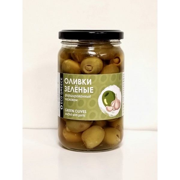 Оливки, фаршированные чесноком, EcoGreece, ст.б., 340г