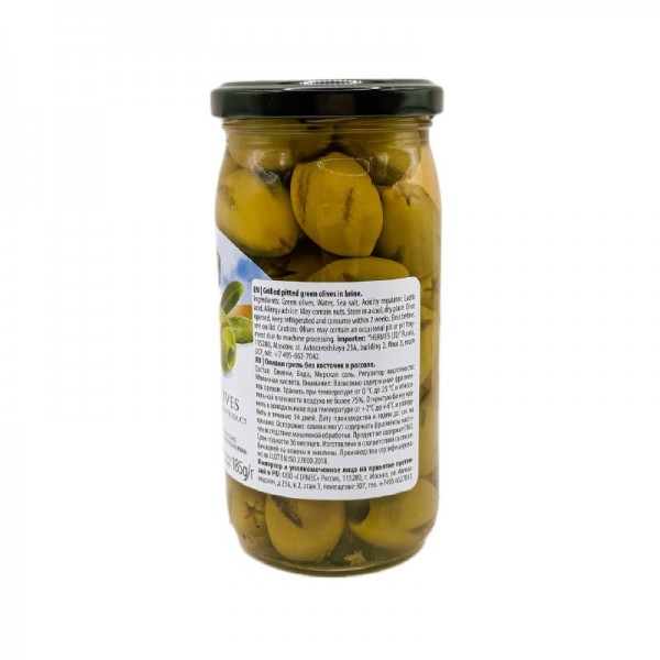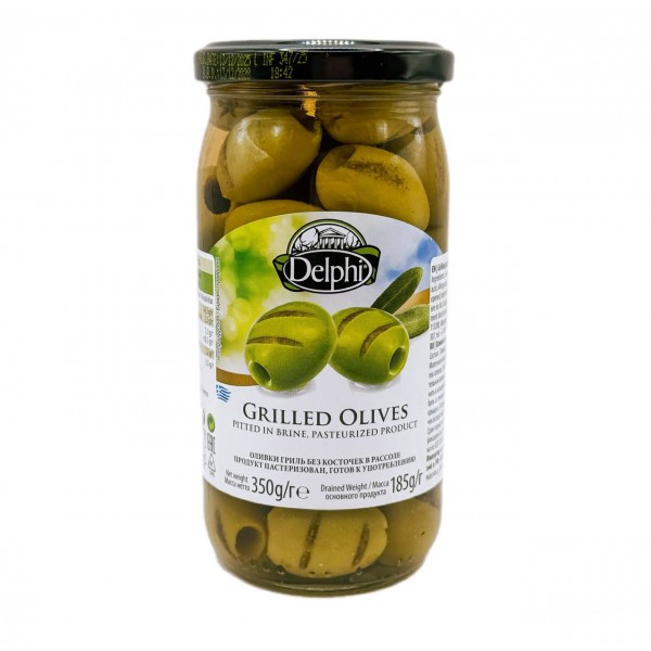 Оливки гриль без косточек в рассоле Delphi, Греция, ст.банка, 350г.