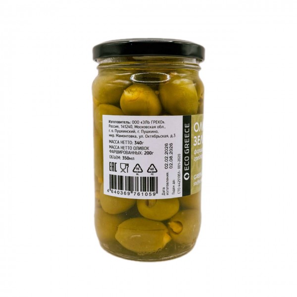 Оливки, фаршированные грейпфрутом, EcoGreece, ст.банка, 340г