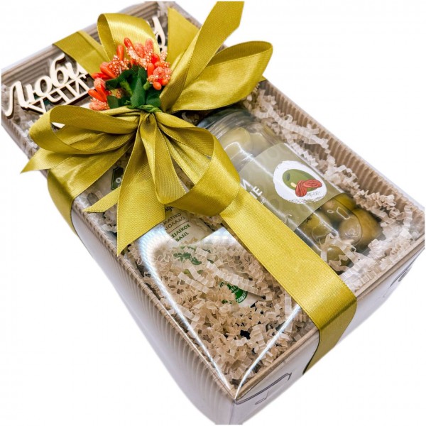 Набор упакован в картонную коробочку с прозрачной крышкой, украшен нарядными лентами.